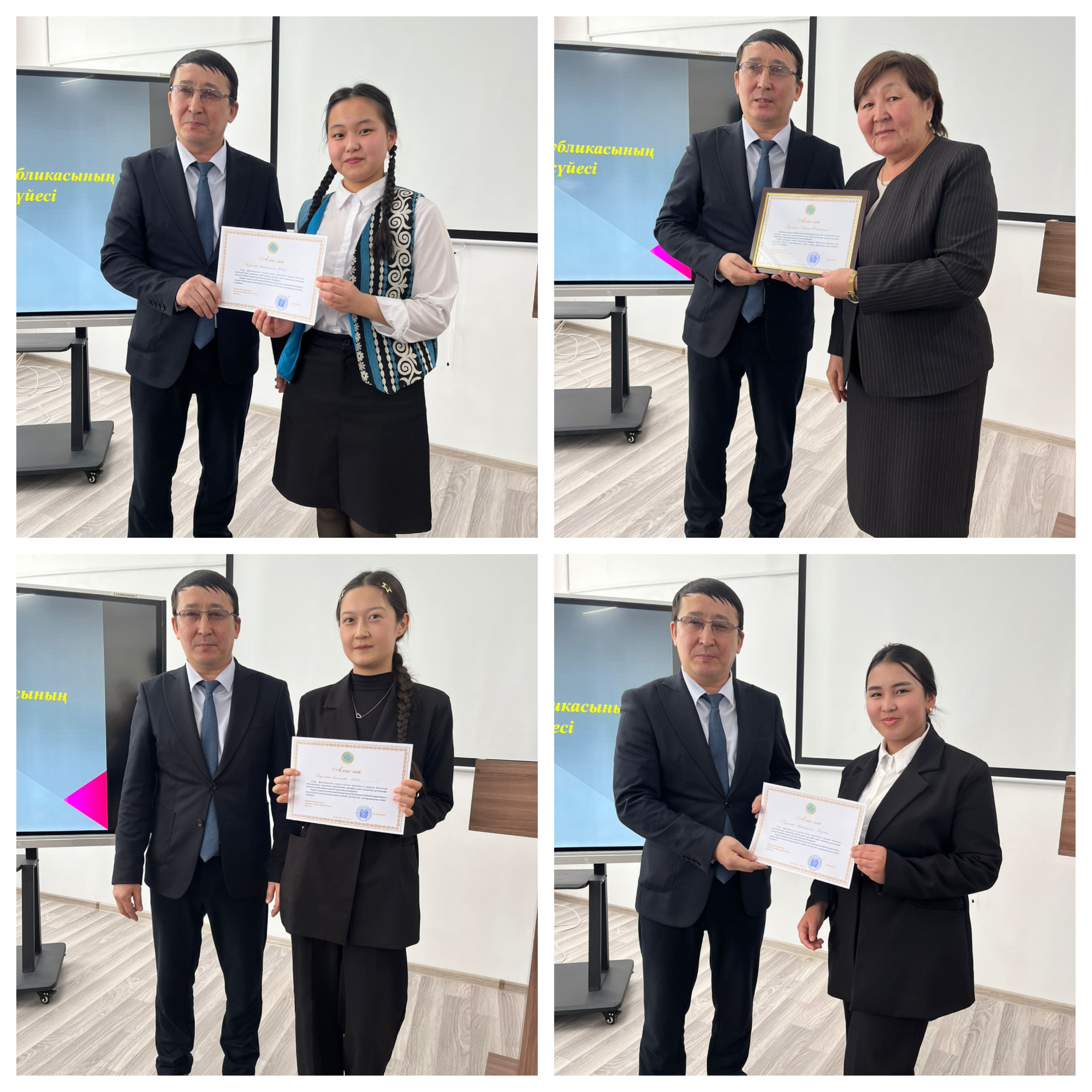 За особый вклад в избирательный процесс и заслуги в правовом воспитании молодежи благодарственным письмом награждена директор школы имени С. Бегалина, председатель участковой избирательной комиссии №110 Жакупова Маржан Омиржановна.