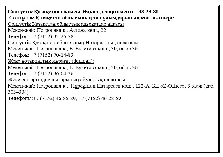 Центральный тұйық көшесі, 2 мекенжайы бойынша Тайынша қаласы әкімінің аппаратында 2024 жылдан бастап әрбір азамат үшін Құқықтық ақпараттың ашықтығын және қолжетімділігін қамтамасыз ету үшін құрылған Құқық кабинеті жұмыс істейтінді. Кабинетте қажетті нормативтік және түсіндіру материалдарының толық жиынтығы орналастырылған ақпараттық стенд орнатылған. Оның негізінде бірыңғай құқықтық кеңістік сайтын пайдалану дағдыларына оқытуды қоса алғанда, халықпен тұрақты түсіндіру жұмыстары және оның мүмкіндіктерімен танысу жүргізіледі (eup.adilet.gov.kz). Сондай-ақ, қала тұрғындары eOtinish сервисі арқылы электрондық өтініш бере алады.