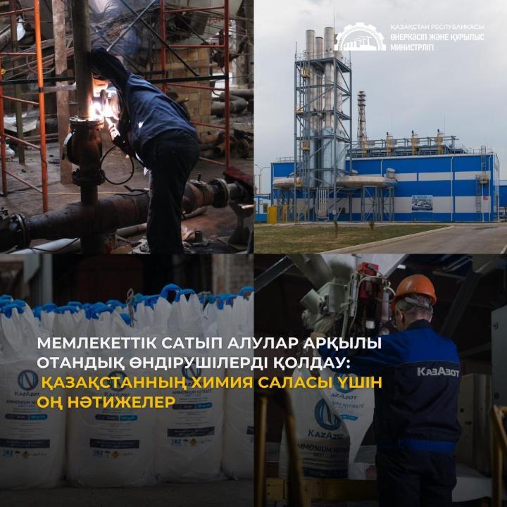 Қазақстанда отандық өндірушілерді қолдаудың маңызды құралдарының бірі ретінде мемлекеттік сатып алулар жүйесі қалыптасқан. Бұл тәсіл химия өнеркәсібінде бірқатар оң нәтижелерге әкелді. Мемлекеттік тапсырыстарды орналастыру кезінде қазақстандық компанияларға басымдық берілуі ішкі өндіріс көлемін арттыруға, импортқа тәуелділікті азайтуға және өндірістік қуаттарды жаңғыртуға мүмкіндік берді.