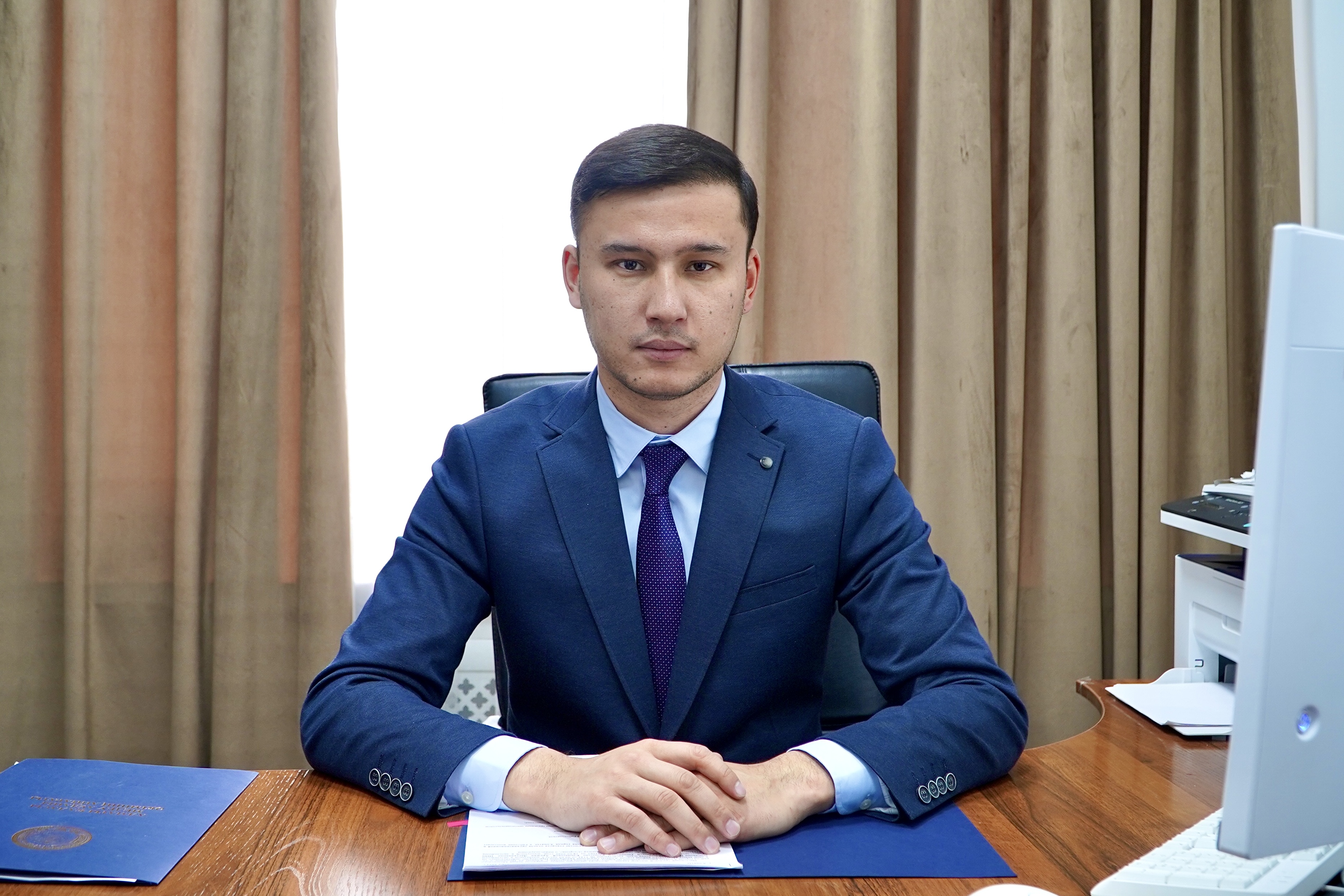 С 2017 по 2018 годы занимал должность статиста отдела коммунального хозяйства аппарата акима Ауэзовского района города Алматы.