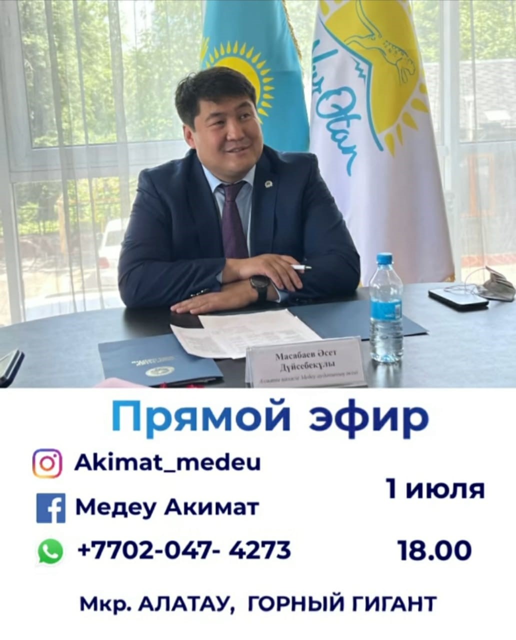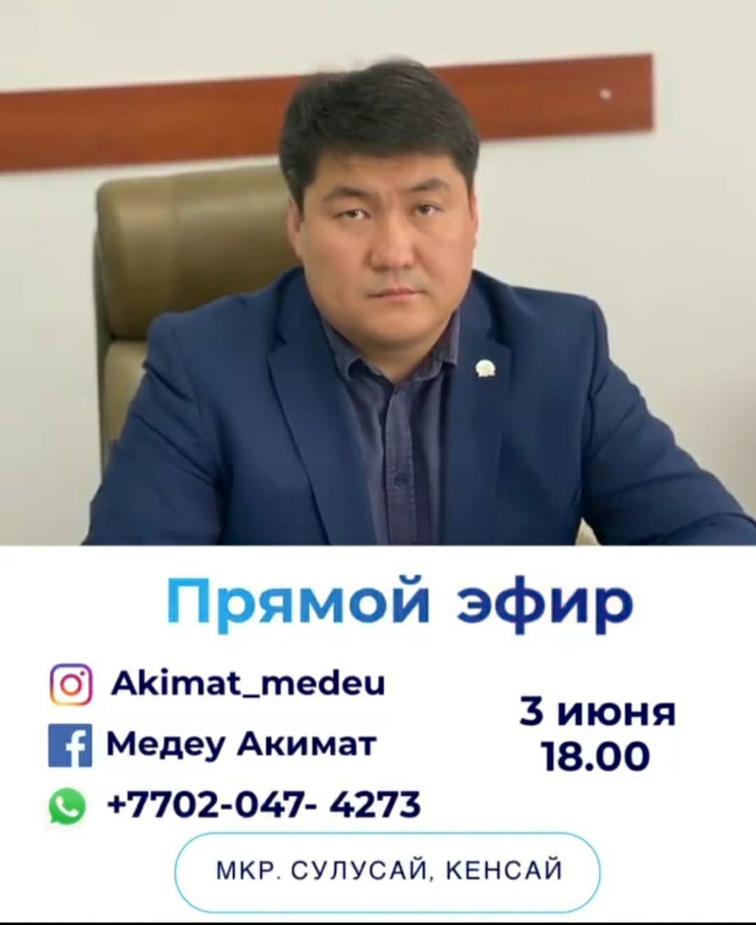 "Медеу адалдық Алаңы", "Адал көмек" жобасы аясында "AntikorLIVE" жобасы аясында Медеу ауданы әкімі аппаратының абаттандыру бөлімінің басшысы м.с. Нұрғалиев аудан аумағында жүргізіліп жатқан жөндеу жұмыстары туралы тікелей эфирде сөз сөйледі. Тікелей эфирде бөлім басшысы аудан тұрғындарының сұрақтарына жауап берді