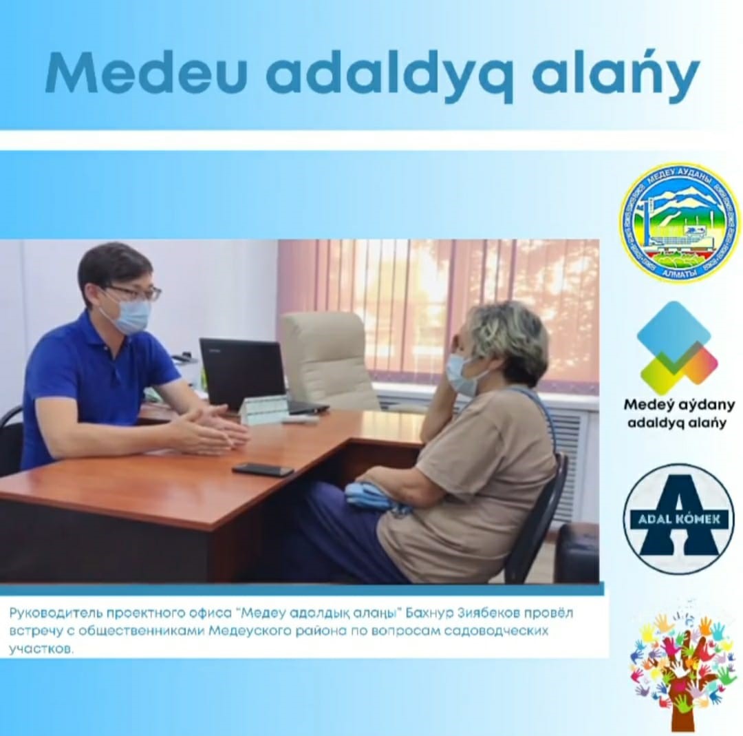 Руководитель проектного офиса “Медеу адалдық алаңы” Бахнур Зиябеков провёл встречу с общественниками Медеуского района по вопросам садоводческих участков.