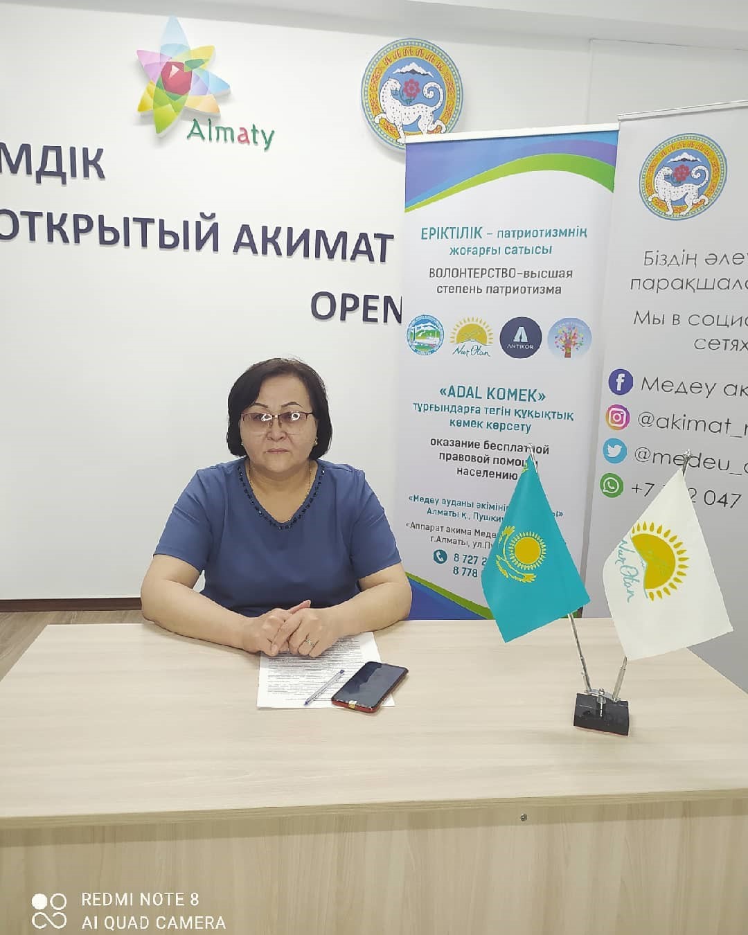 Главный специалист отдела регистрации актов гражданского состояния аппарата акима Медеуского района города Алматы - Айгуль Сарсенбаева рассказала о государственных услугах, оказываемых населению.