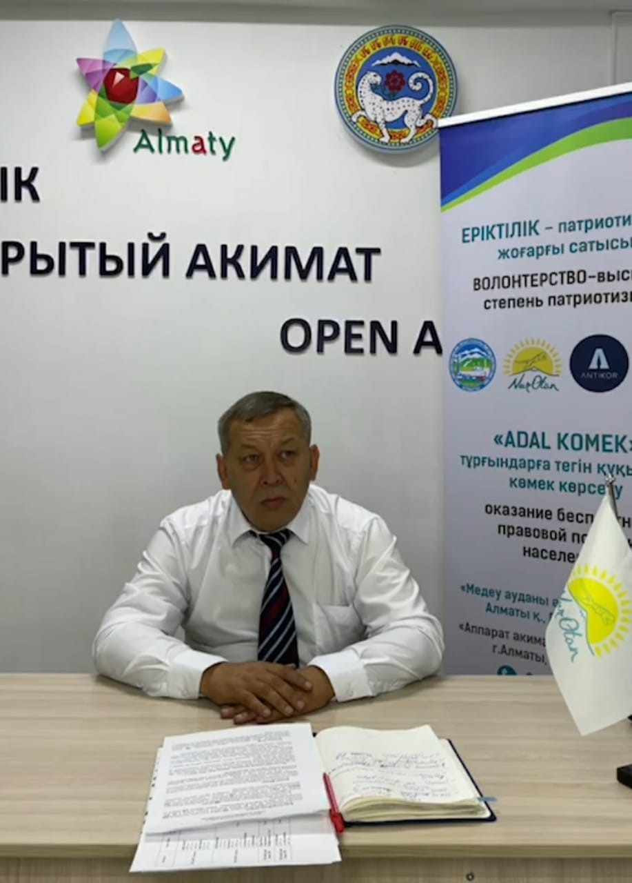 В рамках проекта «Медеу адалдық Алаңы», «Адал көмек» в прямом эфире в рамках проекта «AntikorLIVE» выступил заведающий канцелярией Медеуского районного суда города Алматы Шанкереев Б.А. о гражданском судопроизводстве. В прямом эфире заведающий канцелярией ответил на вопросы жителей района.