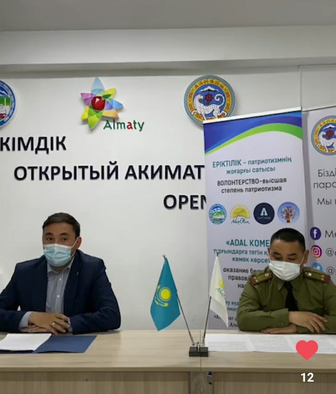 В рамках проекта «Медеу адалдық Алаңы», «Адал көмек» в прямом эфире в рамках проекта «AntikorLIVE» выступил заместитель начальника Управления по делам обороны Медеуского района Насыров Д.Э. об осеннем призыве, предоставлении отсрочки от призыва, освобождение граждан от призыва на воинскую службу. В прямом эфире заместитель начальника ответил на вопросы жителей района.