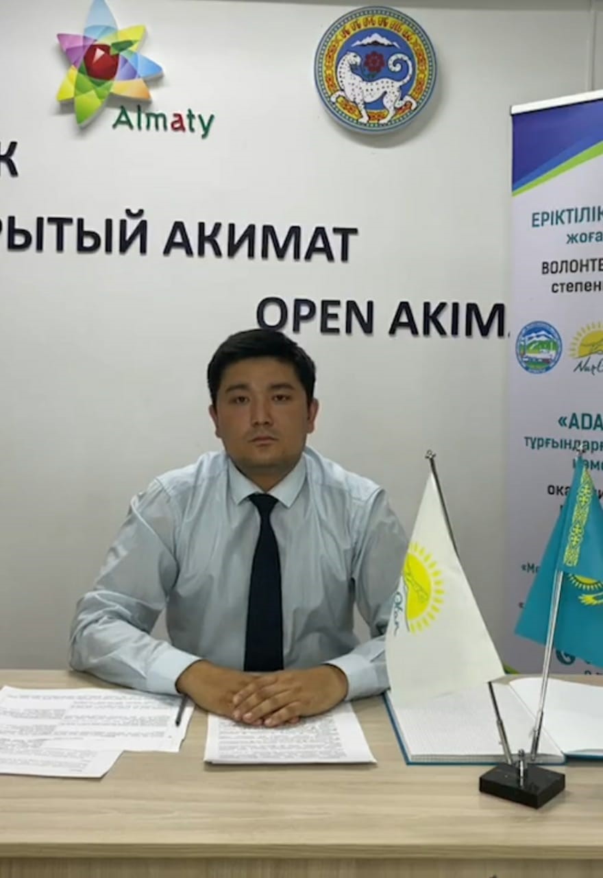 В рамках проекта «Медеу адалдық Алаңы», «Адал көмек» в прямом эфире в рамках проекта «AntikorLIVE» выступил исполняющий обязанности руководителья отдела регистрации актов гражданского состояния аппарата акима Медеуского района Сарсембаева А.Ж. об оказании государственных услуг. В прямом эфире руководитель отдела ответила на вопросы жителей района.