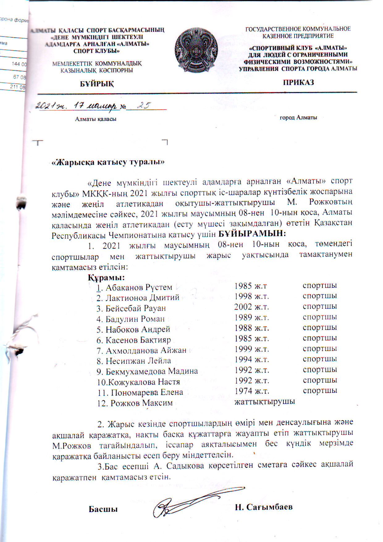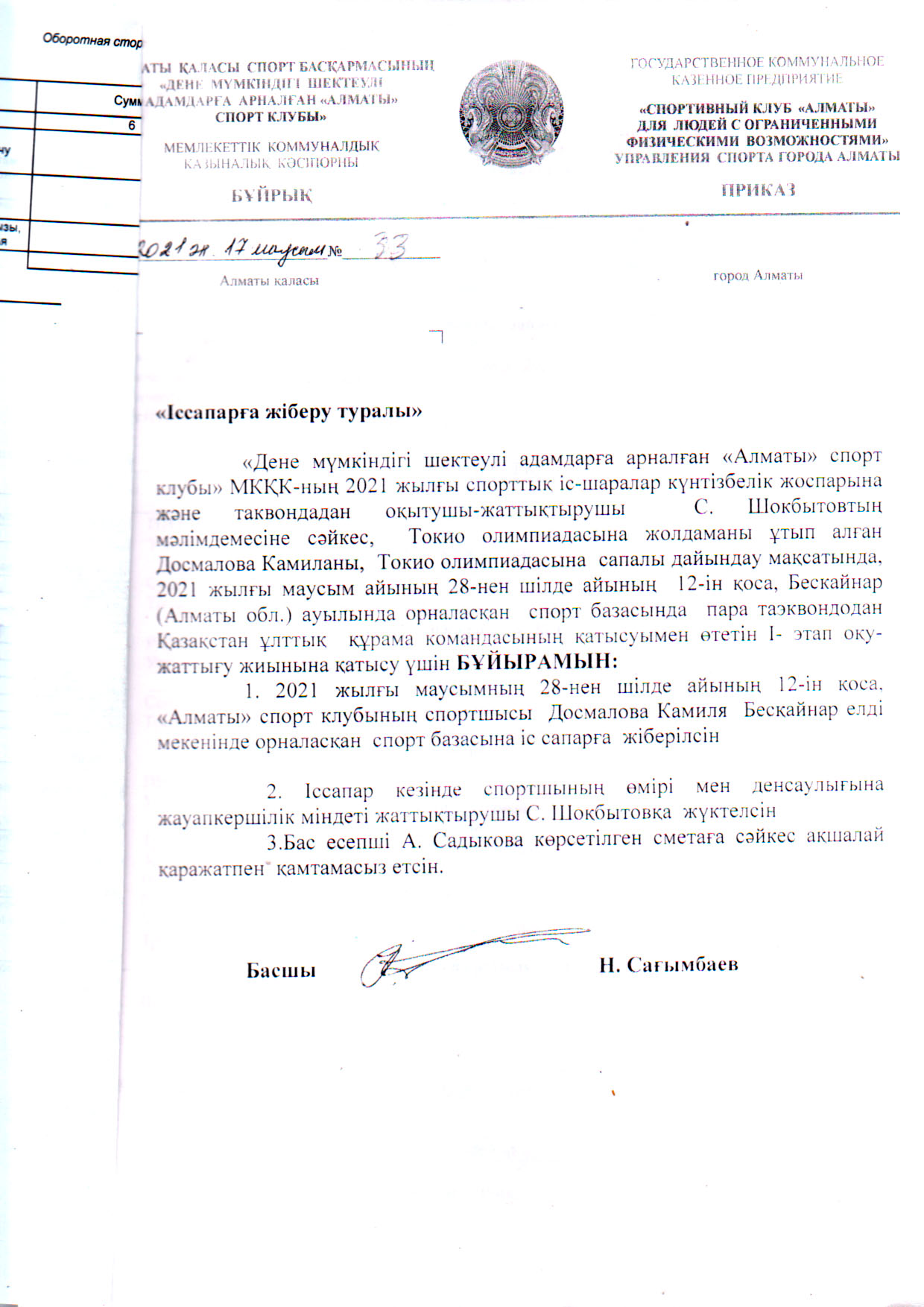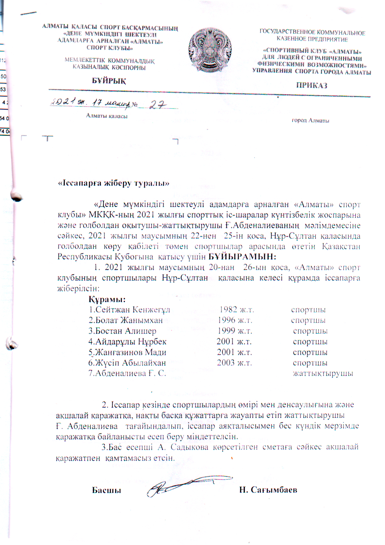 ГККП «Спортивный клуб «Алматы» для людей с ограниченными физическими возможностями»