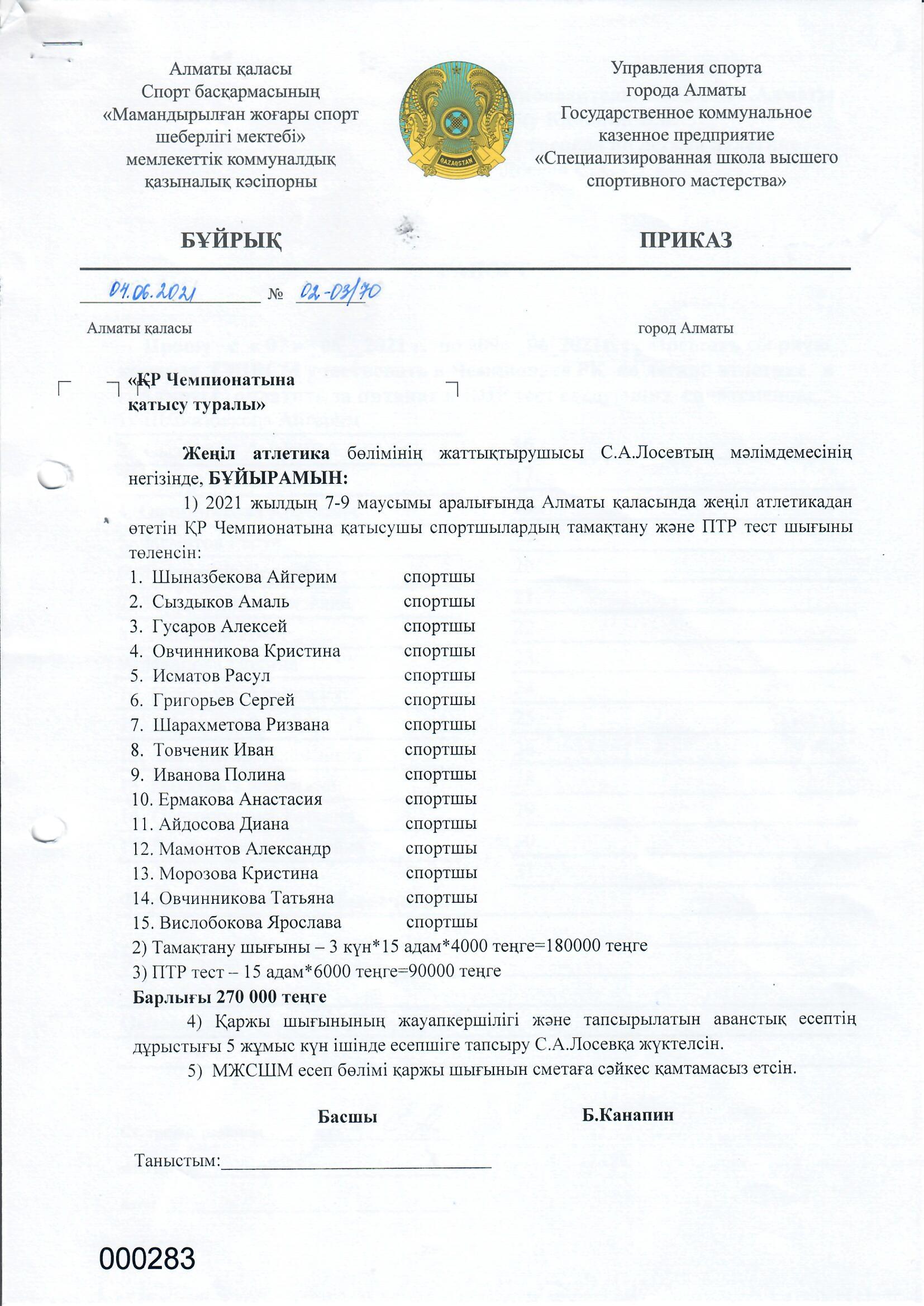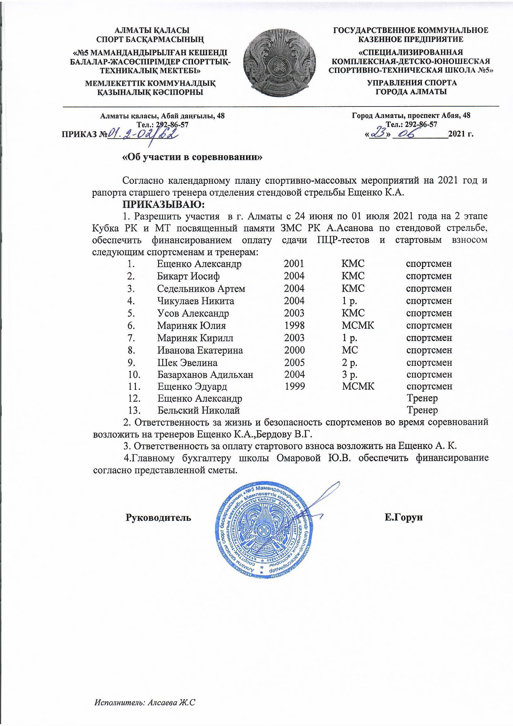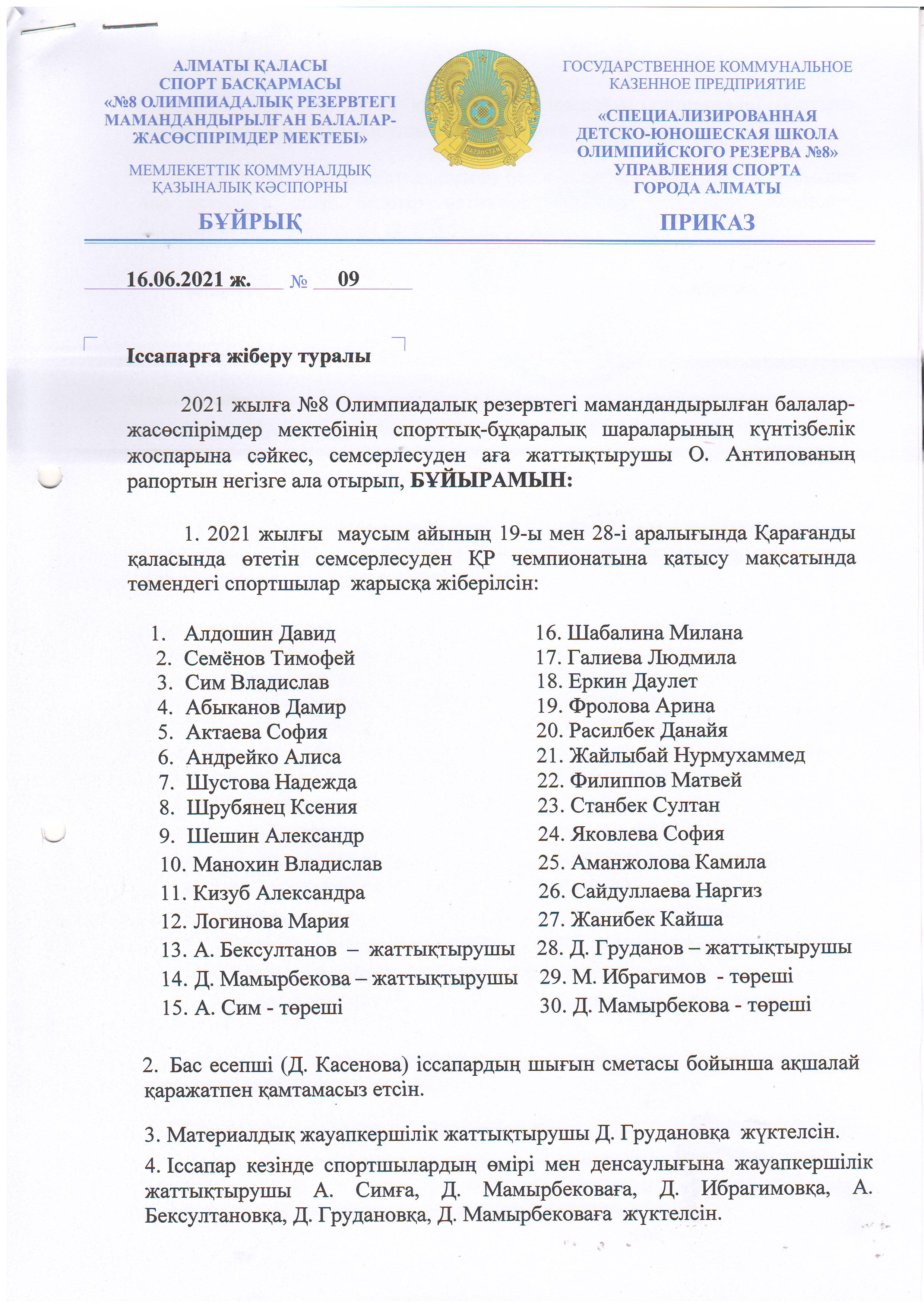 ГККП «Специализированная детско-юношеская школа Олимпийского резерва №1»