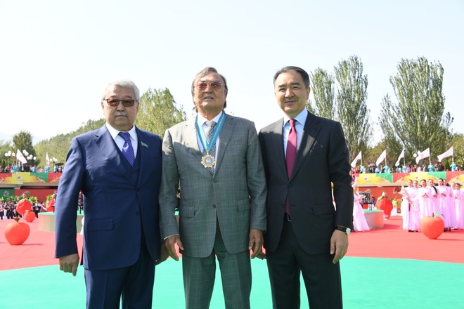 "Бұл мәртебелі атақты менің қаламгерлігімді бұрыннан бағалап келген Бақытжан Сағынтаевтың қолынан алу мені екі есе қуантты", - деді Ә. Нұрпейісов.