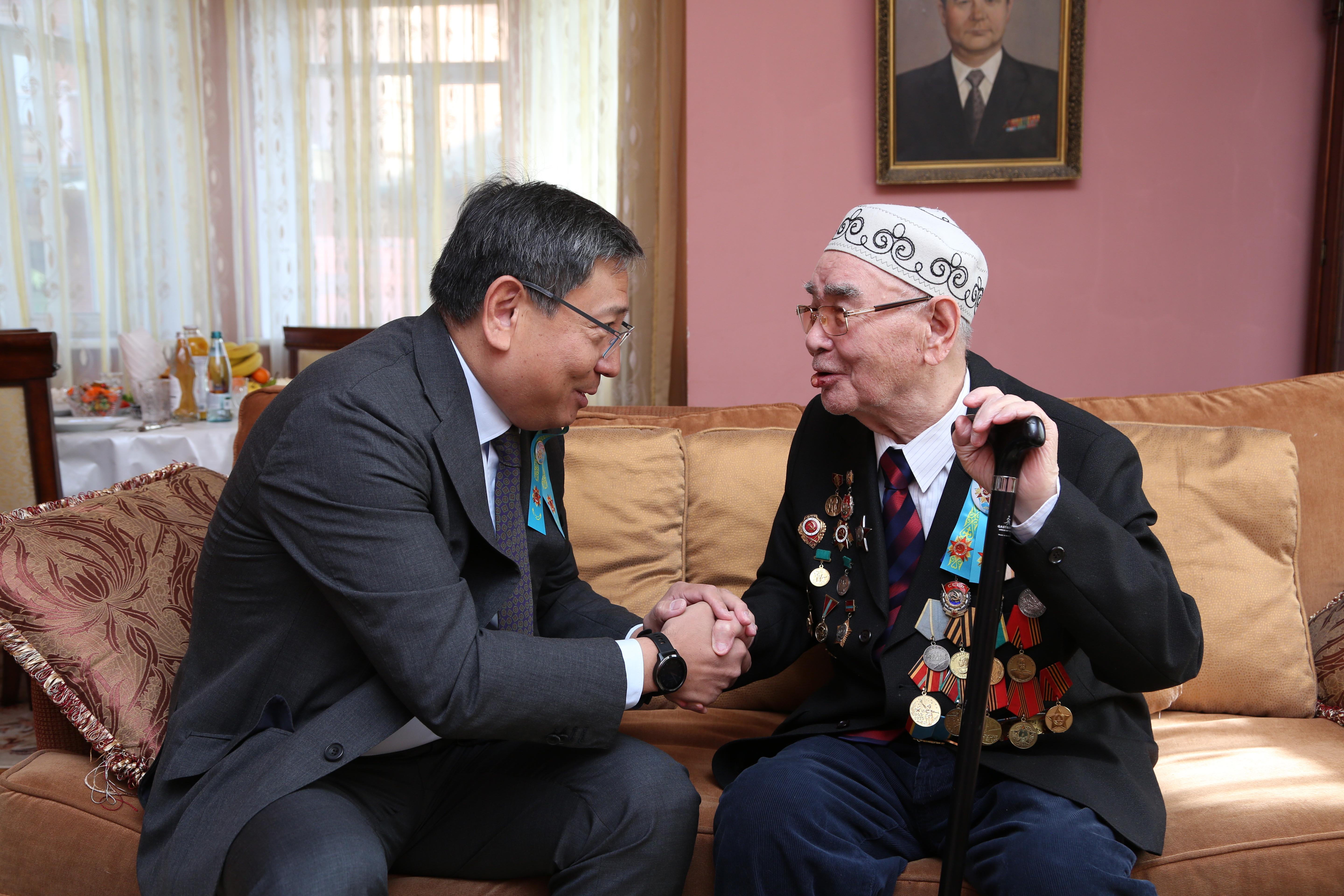 Жеңіс Күні қарсаңында Алматы әкімі Ерболат Досаев Ұлы Отан соғысының ардагерлеріне барып, оларды келе жатқан мерекемен құттықтады.
