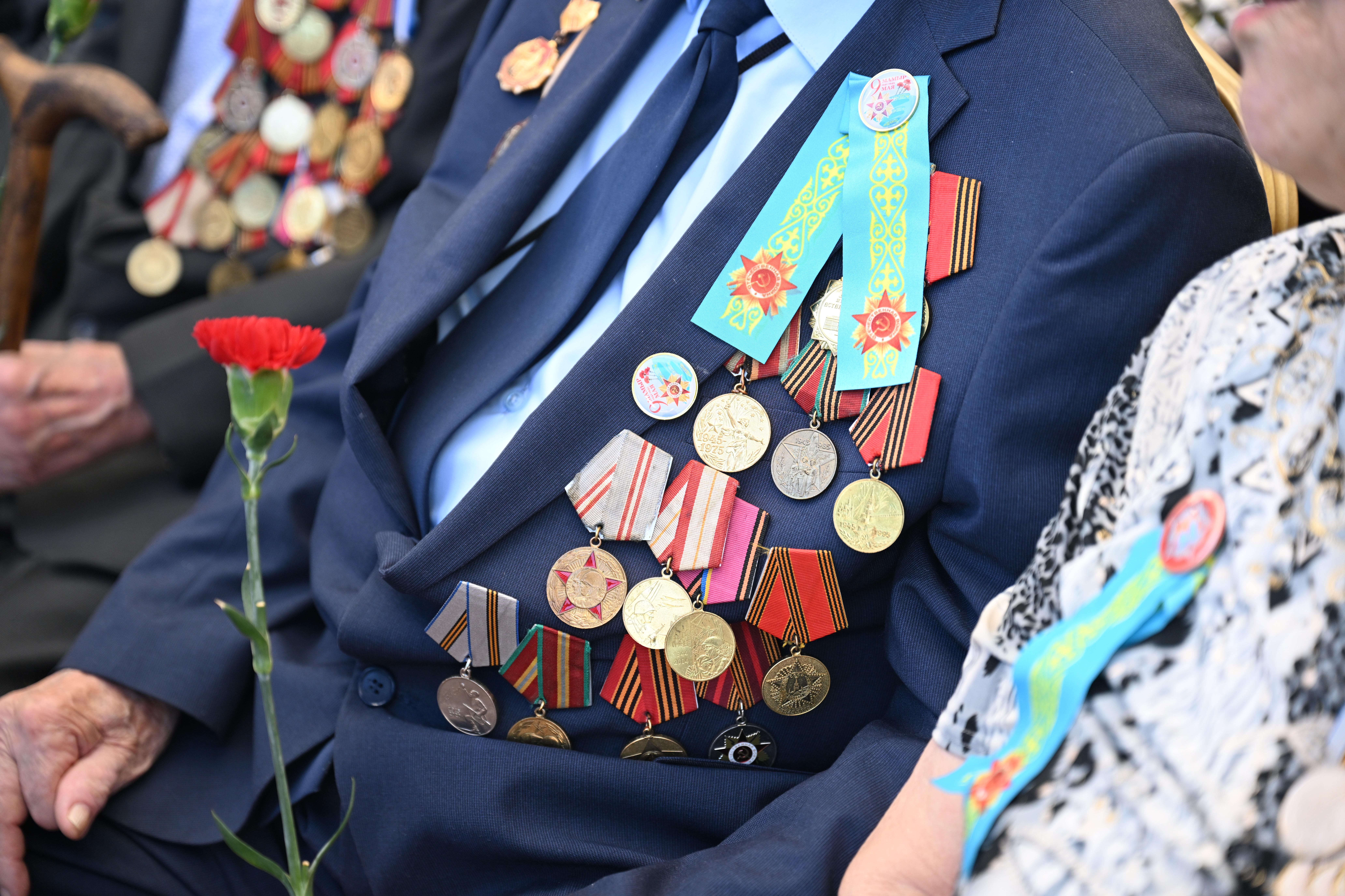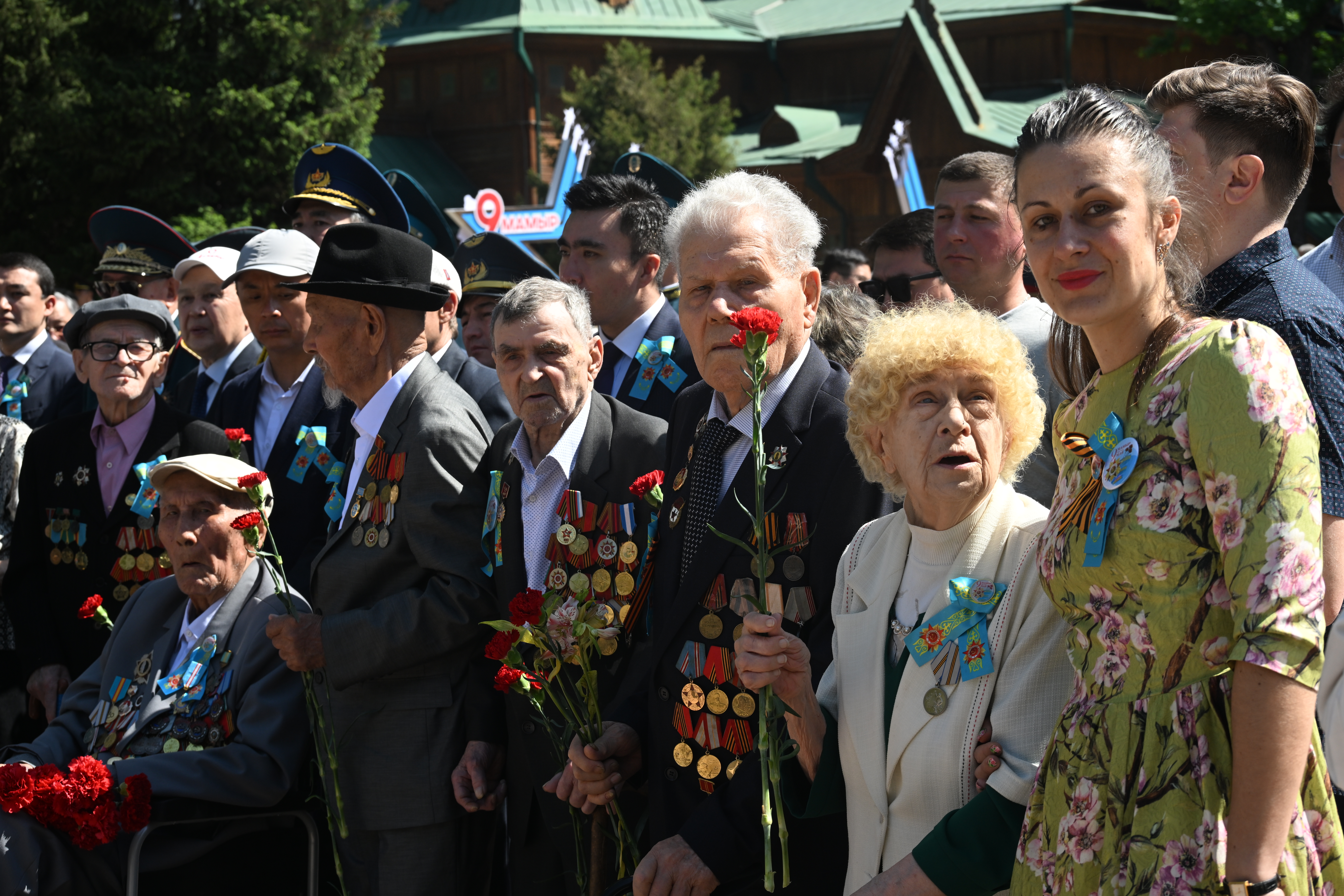 Өз кезегінде ардагерлер кездесу барысында қала басшылығына назар аударғаны үшін ризашылық білдіріп, Алматы тұрғындары мен қазақстандықтарға бейбітшілік пен жақсылық тіледі. Сондай-ақ естелігін бөлісіп, өлең оқып, соғыс туралы әндер айтты.