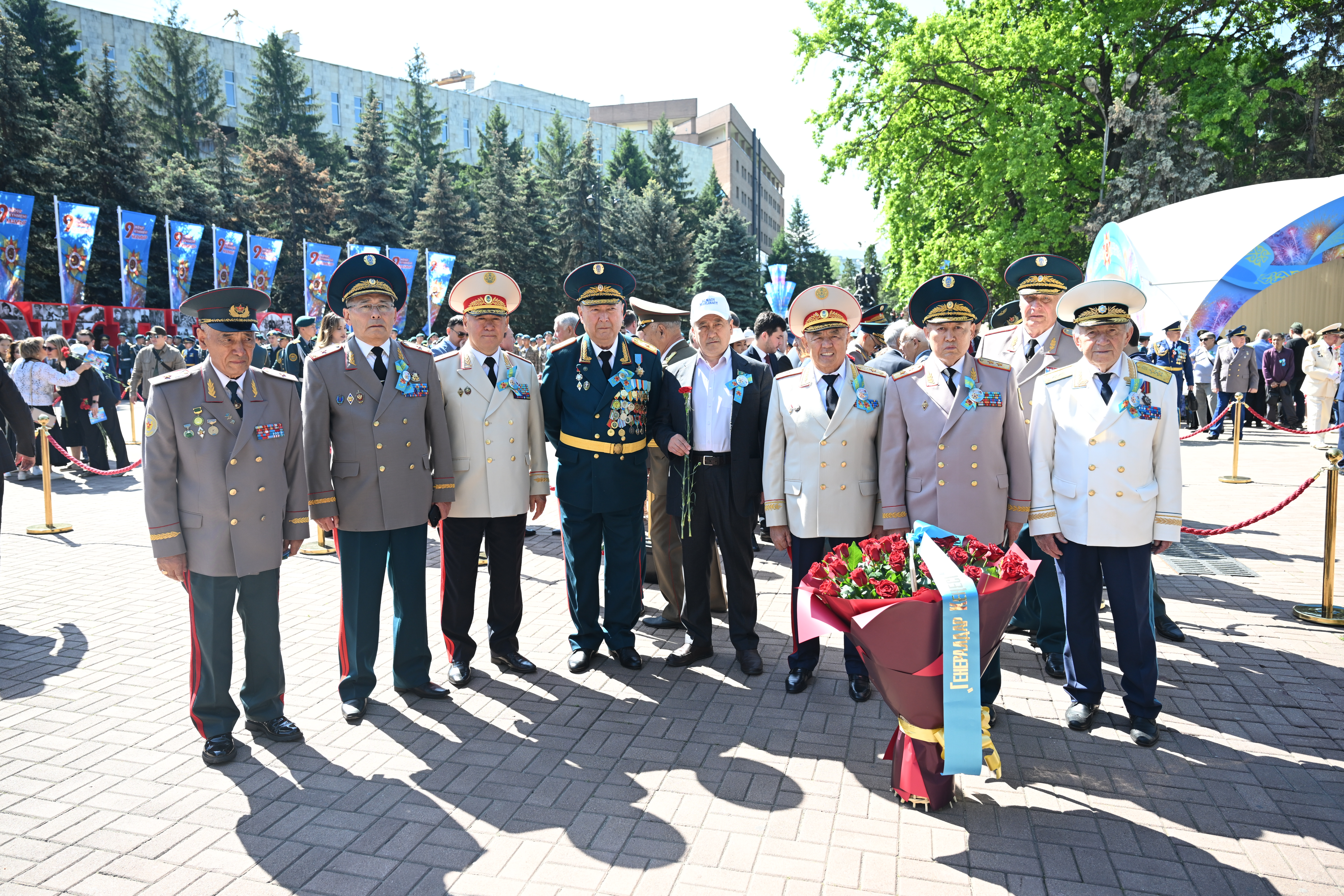 Сондай-ақ, Алматыда Б.Момышұлы монументіне, Т.Бигелдинов, С.Нұрмағамбетов мемориалдық тақтасына, С.Луганский бюстіне, Ә.Шәріпов ескерткішіне, «Отан ұлдарына мәңгілік естелік», «Белгісіз сарбаздың қабірі» және «Отан үшін шайқаста қаза тапқан батырларға мәңгілік даңқ» мемориалдарына гүл шоқтарын қою рәсімдері өтті.