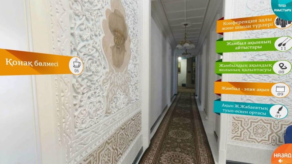 В рамках проекта “Цифровой Казахстан”, указанного в Послании Главы государства Н.Назарбаева народу Казахстана «Новые возможности развития в условиях Четвертой промышленной революции»,были созданы виртуальные туры по музеям области, в 2018 году ценные экспонаты литературно-мемориального музея Ж.Жабаева Жамбылского района переведены в 3Д формат (http://zhetysu360.kz/wp-content/3dtour/ zhambylzhabaev_museum/ zhambul_zhambul_tour.html.)