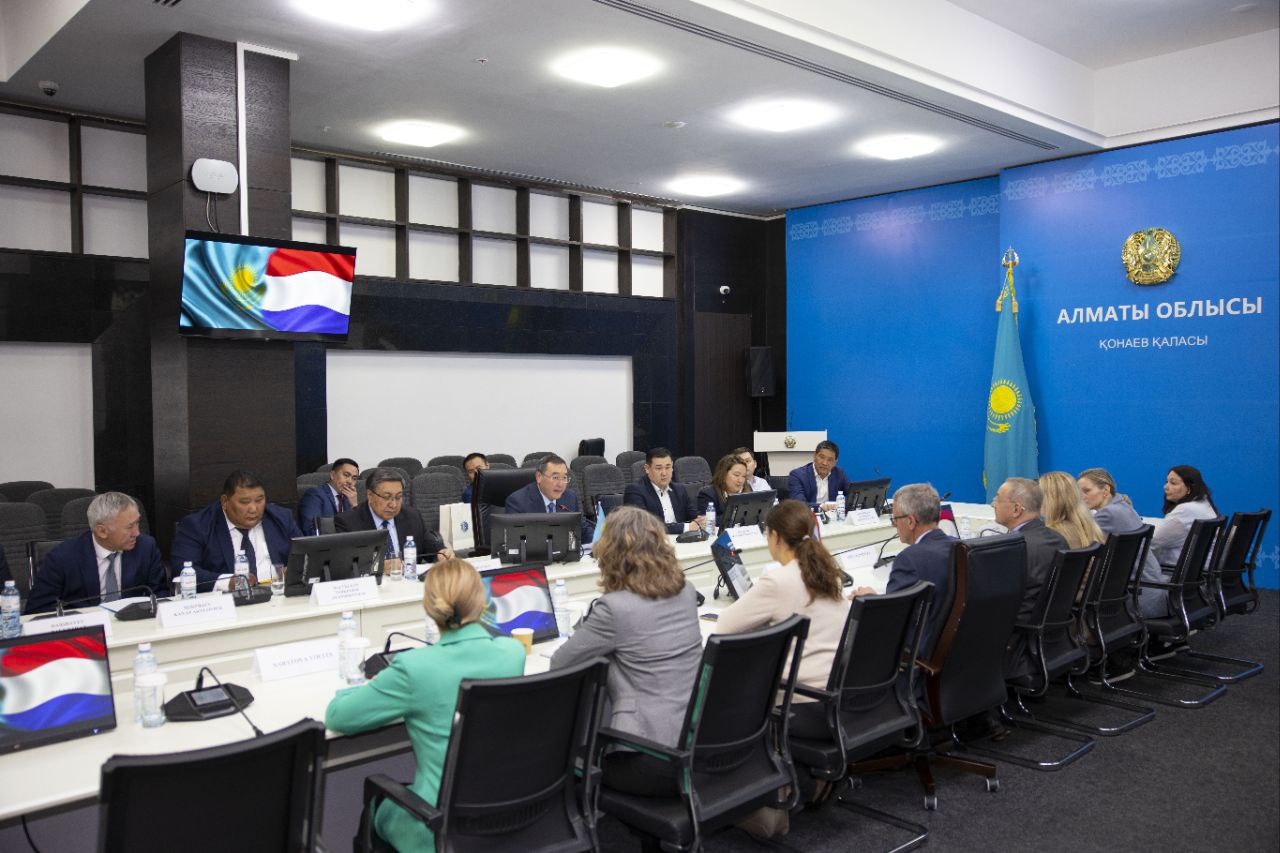Алматы облысының әкімдігінде Нидерланд Корольдігінің Ауыл шаруашылығы, балық шаруашылығы, азық-түлік қауіпсіздігі және табиғатты пайдалану министрлігінің өкілдерімен кездесу өтті. Кеңес Алматы облысының әкімі Марат Сұлтанғазиевтің төрағалығымен өтті.