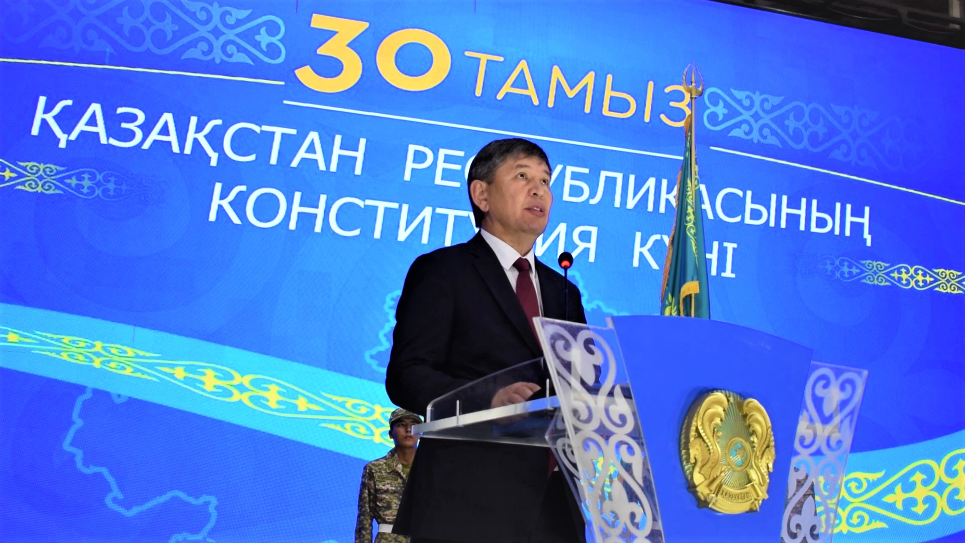 - Я рад приветствовать и поздравить всех присутствующих с Днем Конституции Республики Казахстан. Конституция страны - это общенациональная идея, воплощенная в букве закона. Она отразила в современных правовых понятиях мечты многих поколений наших предков о свободе и возможности самим вершить свою судьбу, о государстве, о независимой стране, известной и уважаемой во всем мире. Поправки в наш закон, принятые на всенародном референдуме 5 июня текущего года, закрепили фундамент Республики Казахстан как светского, правового и единого государства. В этот праздничный день желаю всем вам счастья, мира, добра и благоденствия, достижений в труде и новых свершений на благо независимого Казахстана! Пусть благополучие и уверенность в завтрашнем дне царят в каждой семье, а стремление к новым достижениям приведет нас к большим успехам, - сказал глава района.