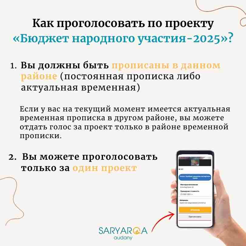 Маңызды: Дауыс беруге тек Сарыарқа ауданының тұрғындары қатыса алады (тұрақты немесе уақытша тіркеуі бар)