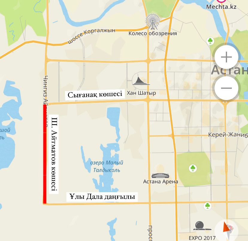 В прошлом году движение было обеспечено лишь по четырем полосам: две в одном направлении и две в другом. Открытие улицы Айтматова значительно снизит нагрузку на такие ключевые магистрали, как проспекты Туран и Кабанбай батыра, а также улицы Сыганак и К. Мухамедханова, что особенно важно для новой части города.