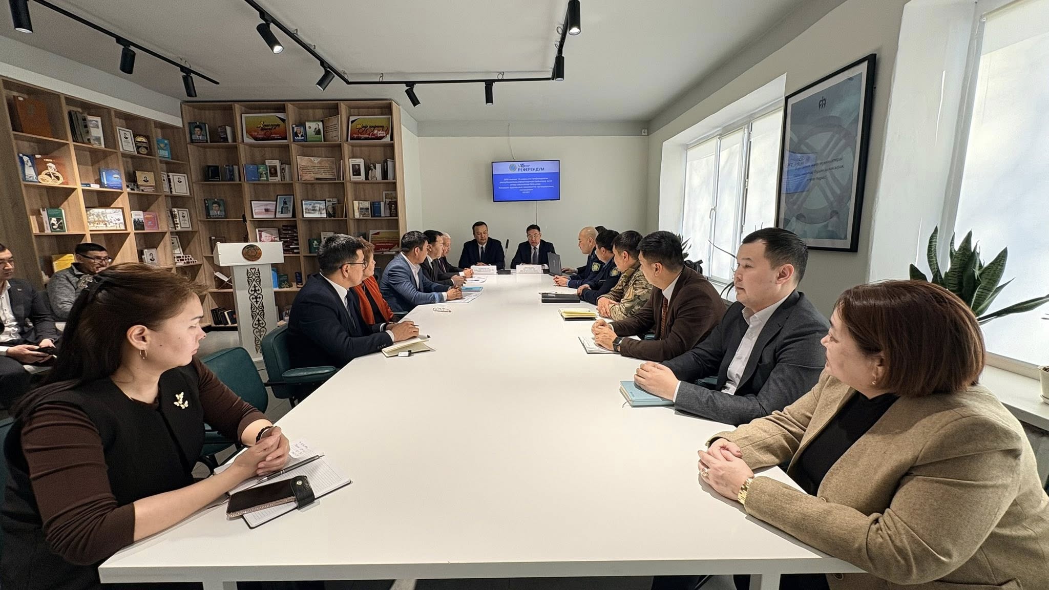 Сегодня в районной библиотеке под председательством акима района Алпамыса Кушкинбаева состоялось совещание по вопросам проведения республиканского референдума, назначенного на 15 марта 2026 года. В мероприятии принял участие председатель Западно-Казахстанской областной территориальной комиссии референдума Әдил Жоламанов, который обсудил с представителями государственных органов ход подготовки. В совещании также участвовали заместитель акима района Руслан Гумар, руководители правоохранительных органов, начальники районных отделов и учреждений.