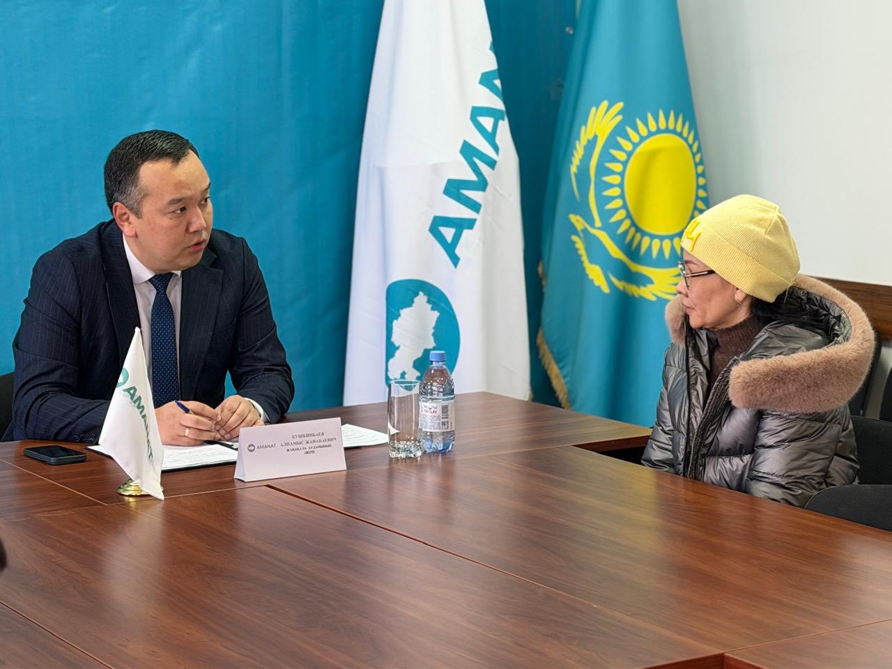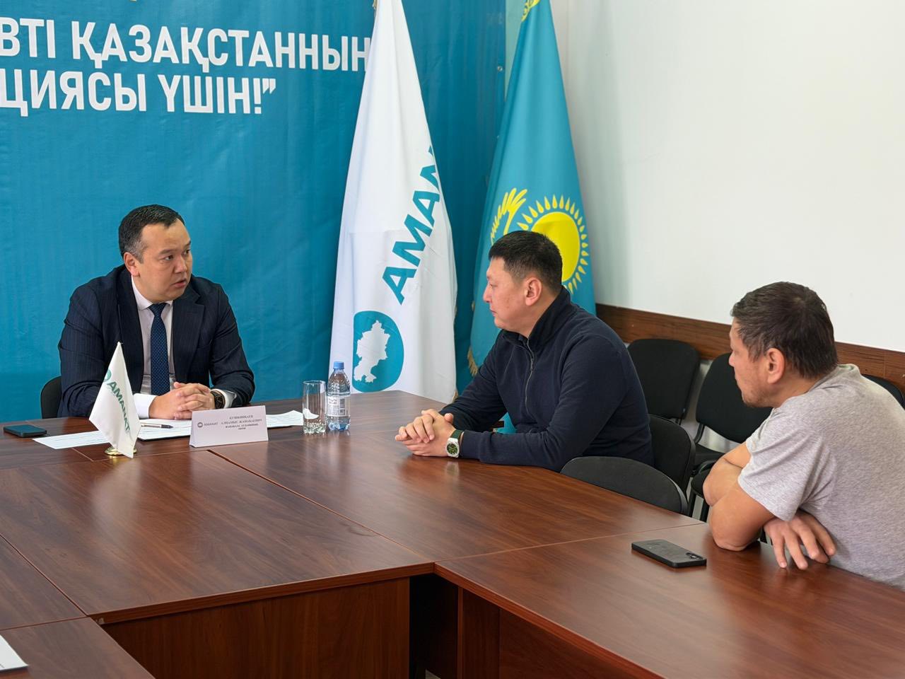 В районном филиале партии AMANAT в Жангалинском районе аким района Алпамыс Кушкинбаев провёл личный приём граждан и выслушал актуальные вопросы, волнующие жителей. В ходе встречи, прошедшей в открытом формате, граждане напрямую обратились к главе района, озвучив свои предложения и проблемные вопросы.