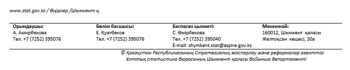 2023 жылғы 1 сәуірге Шымкент қаласының халық саны 1198,5 мың адамды құрады. 2022 жылғы 1 сәуірмен салыстырғанда халық саны 29,3 мың адамға немесе 2,5% артты.