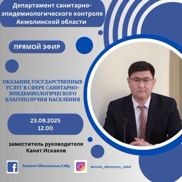 Анонс брифинга заместителя Главного Государственного санитарного врача Акмолинской области Серика Омарханова