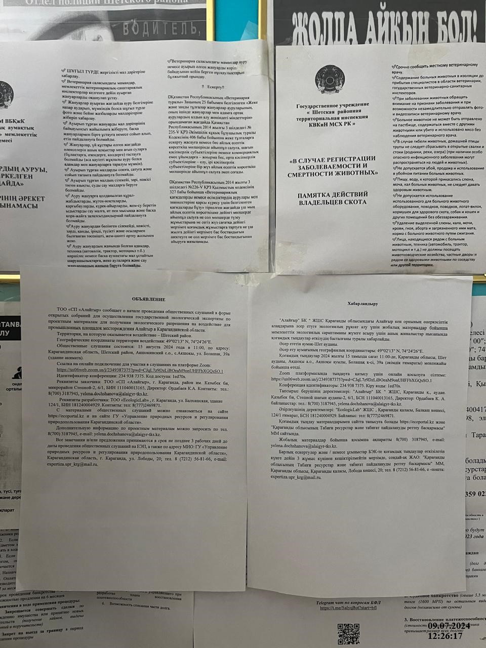 С материалами общественных слушаний можно ознакомиться на сайте https://ecoportal.kz и на сайте ГУ «Управление природных ресурсов и регулирования природопользования Карагандинской области».