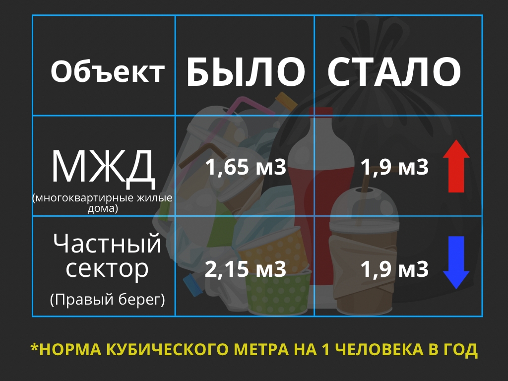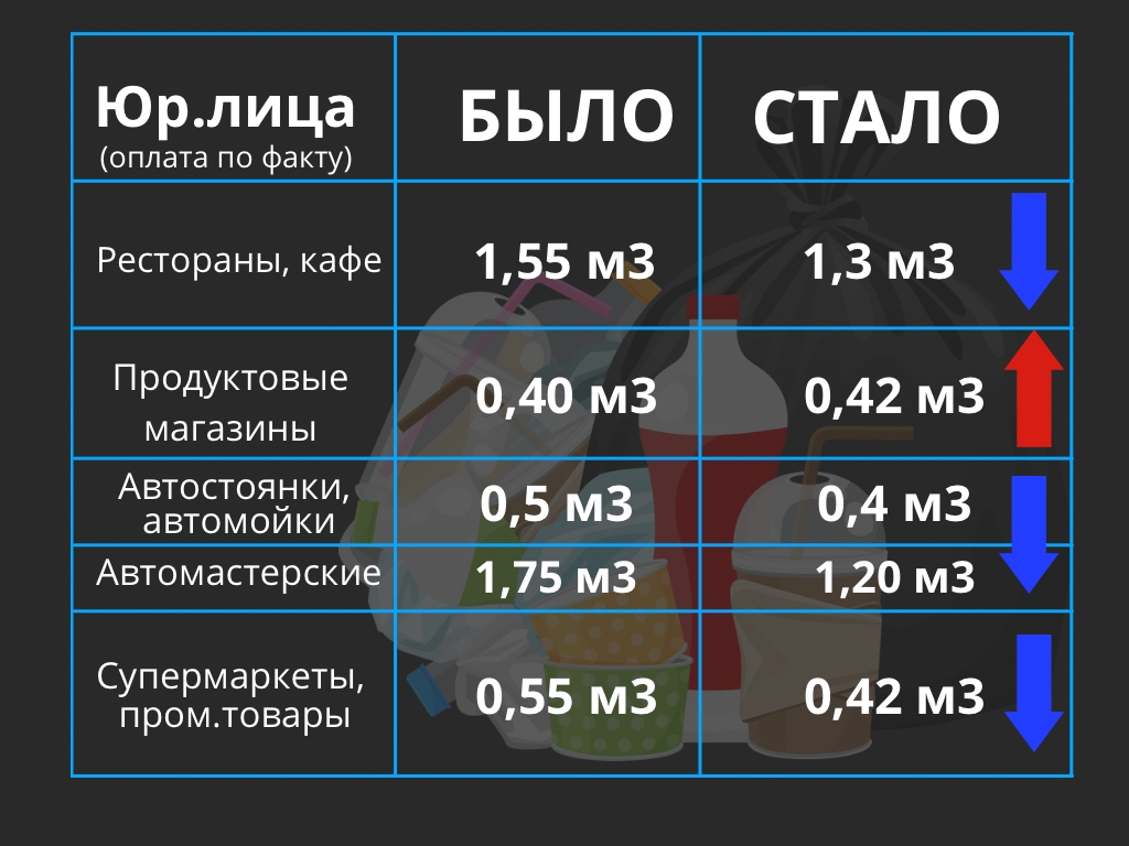 14 апреля 2023 года на сессии маслихата Темиртау депутаты утвердили норму потребления ТБО, что составляет 1,9 м3 на 1 жителя в год. Что касается предпринимателей, то в зависимости от вида деятельности субъектов предпринимательства норма потребления отличается. Предлагаем наглядно ознакомиться с изменениями.
