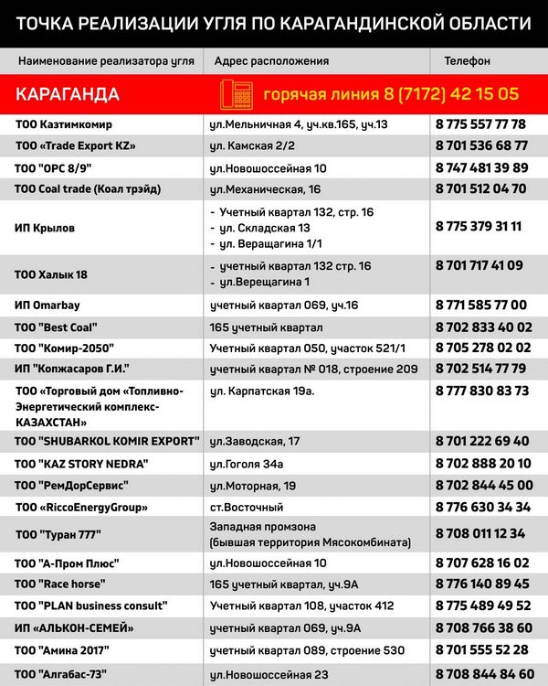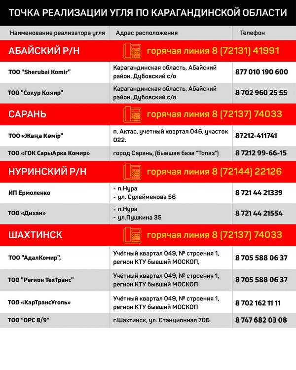 – На сегодняшний никаких проблем с обеспечением нет, реализация идёт спокойно. Что касается цен, то шубаркольский уголь в среднем стоит 19 100 тенге за тонну, кузнецкий – 16 500, майкубинский – 16 000. К примеру, цена на шубаркольский уголь в городе варьируется от 15 500 до 15 800 тенге. На формирование стоимости влияет ряд факторов, в первую очередь – логистика, – отметил заместитель руководителя управления предпринимательства и промышленности Ақдидар Рымбек. – Обеспечение населения твёрдым топливом находится на контроле.