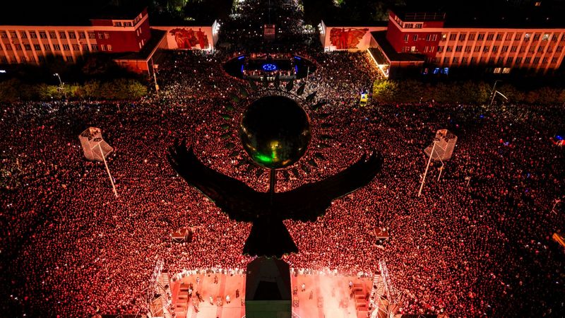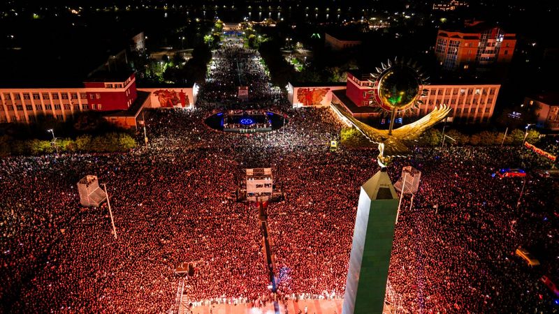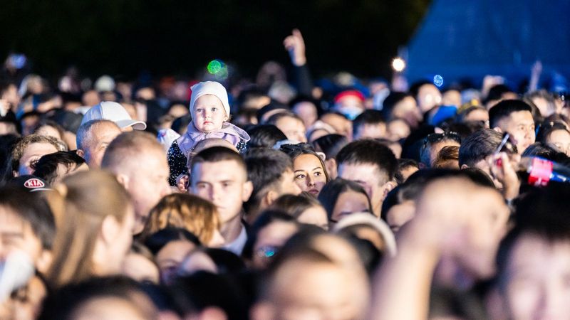 На площади Независимости в Караганде на концерт от компании Qarmet собралось более 120 тысяч человек.