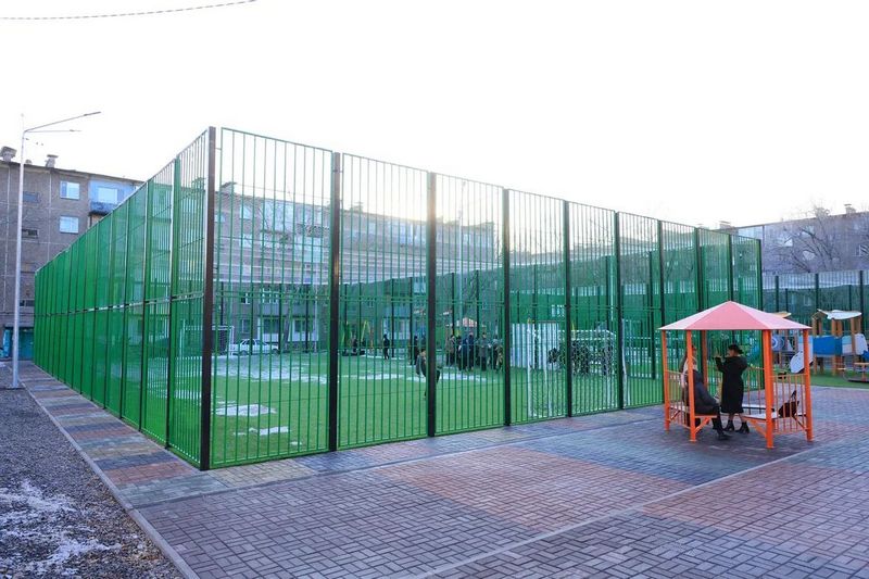 Мұнда тұрғындар үшін ойын алаңы мен спорт аймағы бар заманауи демалыс кеңістігі жасалған. Әткеншектер, тренажёрлар, орындықтар орнатылып, аула жарықтандырылды.
