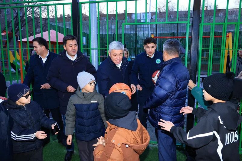 Әкім аула тұрғындарымен сөйлесіп, жасөспірім футболшыларға жаңа спорт доптарын табыстады.