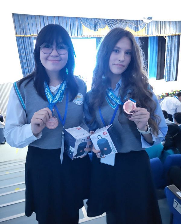 Қола медаль иегерлері – Қарағанды қаласындағы №2 лицейдің оқушысы Альбина Гердт пен «Дарын» мамандандырылған мектеп-лицей-интернатының оқушысы Камила Насырова.
