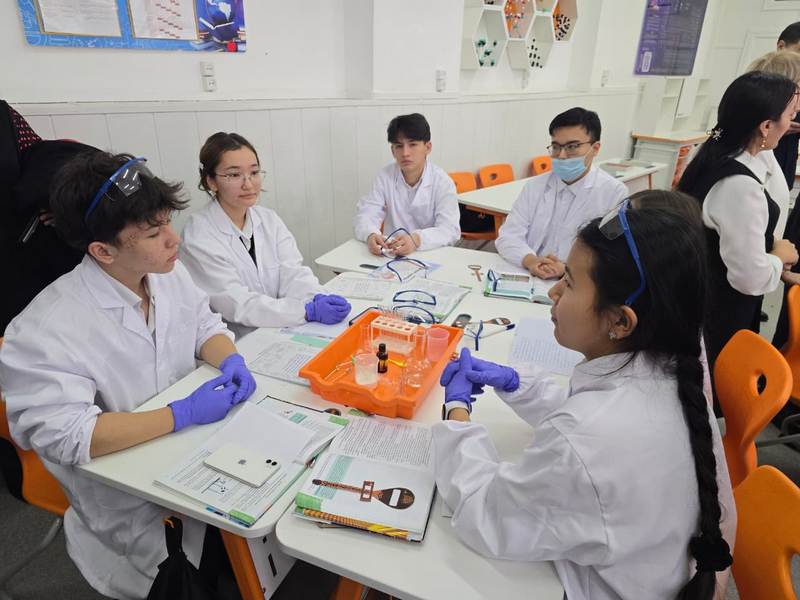 Химия сабақтарында да тәжірибе көлемі артты: оқушылар реакциялар жүргізіп, судың рН деңгейін анықтап, химиялық элементтерді зерттеуге мүмкіндік алып отыр.