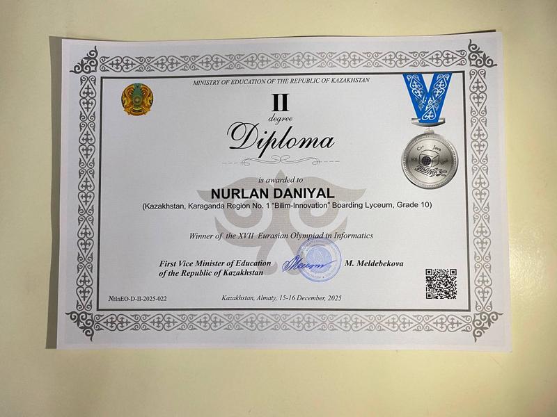 – Бұл олимпиада – Еуразия өңіріндегі алгоритмдік бағдарламалау бойынша ең беделді командалық жарыстардың бірі. Сайыс форматы ICPC деңгейіндегі халықаралық олимпиадаларға барынша жақын. Шектеулі уақыт ішінде біз 12 күрделі тапсырманы орындауымыз керек болды. Командамыз оның жетеуін сәтті шешіп, үздік нәтижелердің біріне қол жеткізді. Соның арқасында алтын медальдарға ие болдық, – деді Батыр Ерденов.