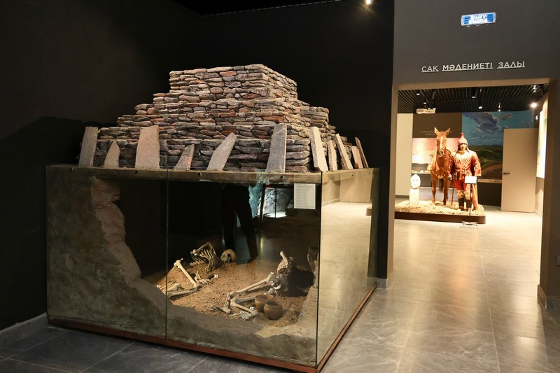 Залдардың бірінде келушілер Шет ауданындағы Талды археологиялық паркінде орналасқан Қаражартас қорымындағы әйгілі сақ пирамидасының макетін тамашалай алады.