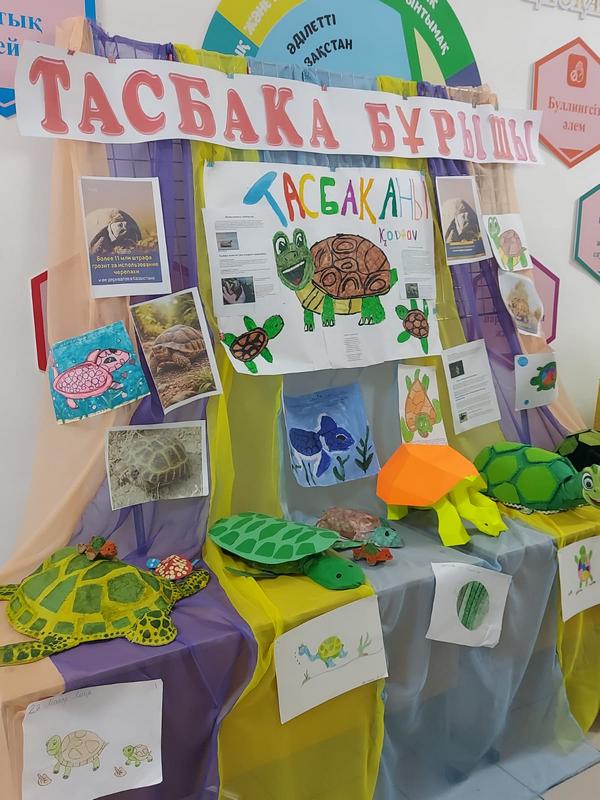 — Біздің бұрышты жасауға 3–7 сынып оқушылары қатысты. Олар сурет салып, макеттер жасап, рефераттар дайындады. Біз бұрыштың фото және бейнематериалдарын жібергеннен кейін шамамен бір аптадан соң қазылар алқасынан жауабын алып, мектебіміздің үшінші орын иеленгенін білдік. Мектептен екі өкіл Алматы қаласына марапаттау рәсіміне және құтқарылған тасбақаларды табиғи мекеніне жіберу іс-шарасына шақырылды. Байқаудың ең белсенді қатысушылары ретінде төртінші сынып оқушысы Тахмина Рахман мен үшінші сынып оқушысы Нүрилә Әбен таңдалды, — деді биология пәнінің мұғалімі, жоба кураторы Самал Кенжебекова.