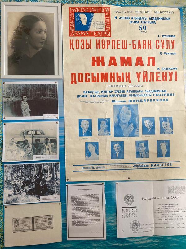 В Каркаралинском историко-краеведческом музее представлена выставка к 100-летию со дня рождения заслуженной артистки Казахской ССР, народной артистки СССР и РК педагога Шолпан Жандарбековой.