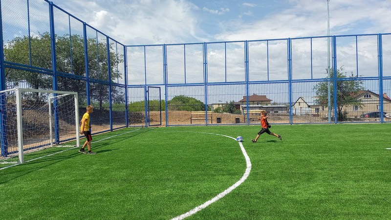 Следом началось благоустройство. Завершается строительство футбольного поля с искусственным газоном, антивандальным ограждением.