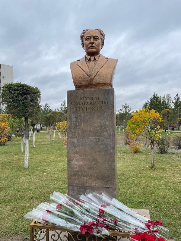 К 125-летию Мухтара Ауэзова в Караганде открыли бюст учёного и писателя. Он установлен на площади возле Центральной городской библиотеки.