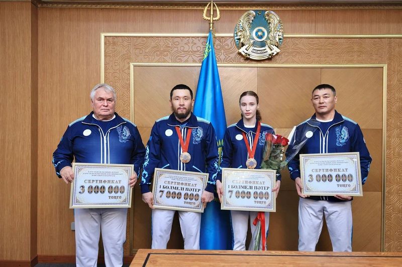 Призёрам вручили ключи от однокомнатных квартир и денежные сертификаты на 7 млн тенге. Тренеров наградили денежными сертификатами на 3 млн тенге.
