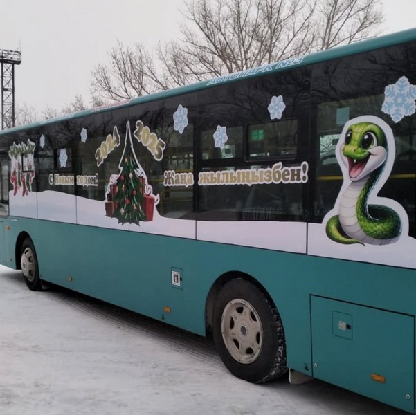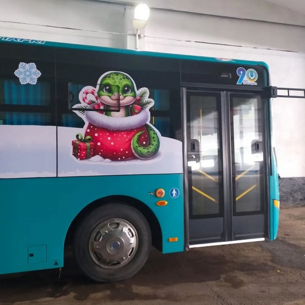 № 3 Қарағанды автопаркі жолаушыларға мерекелік көңіл-күй сыйлайды. Маршруттарға Жаңа жылдық безендірілген автобустар шықты.