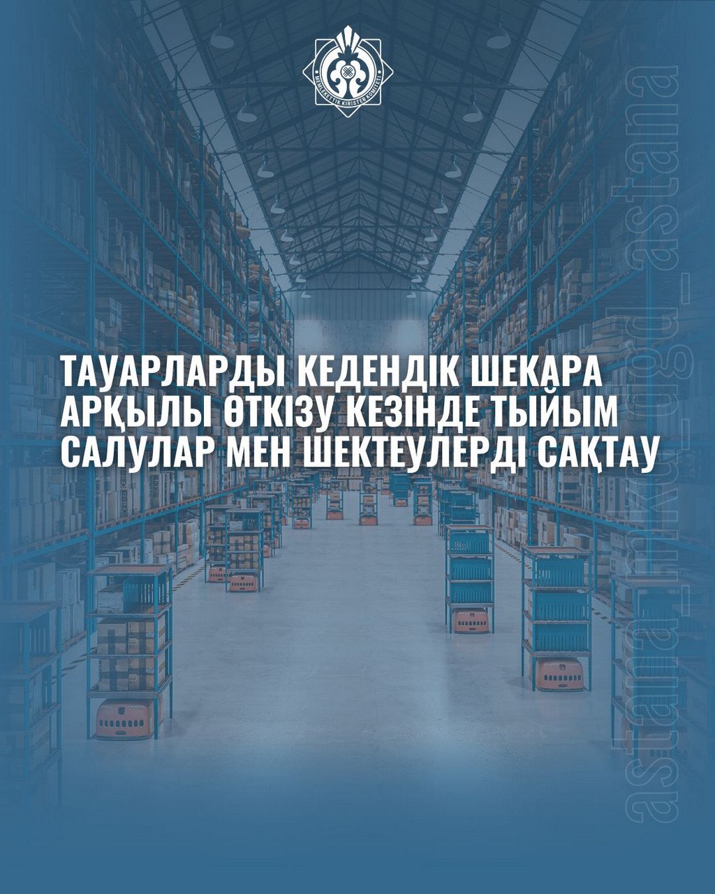 Тауарлар тыйым салулар мен шектеулер сақтала отырып, Еуразиялық экономикалық одақтың кедендік шекарасы арқылы өткізіледі және кедендік рәсімдермен орналастырылады.