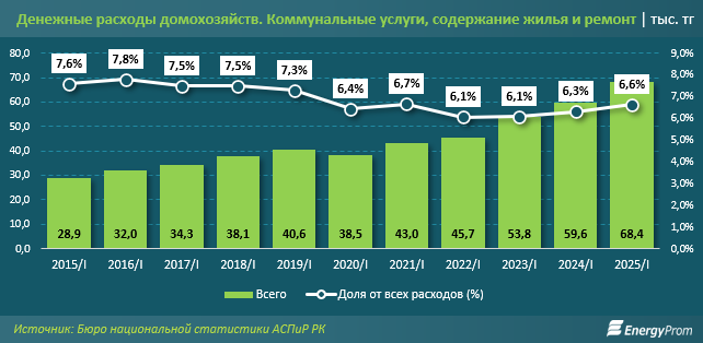 Теперь, изучив информацию международных аналитиков, посмотрим, что говорит казахстанская статистика. Согласно данным БНС, расходы среднестатистического казахстанского домохозяйства на коммунальные услуги, содержание и ремонт жилья составили 68,4 тыс. тг за первый квартал текущего года (или около 23 тыс. тг в месяц). К слову, с учётом того, что в эту сумму входят содержание и ремонт жилья, данные выглядят достаточно похожими на те, что приводят эксперты Numbeo.