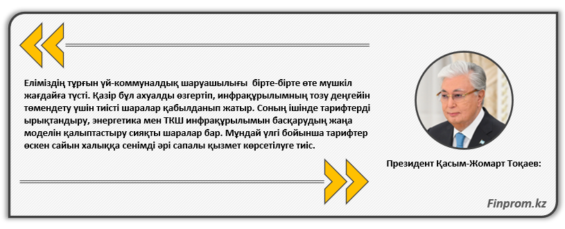 Президент Қасым-Жомарт Тоқаев Қазақстан халқына Жолдауында әлеуметтік тұрақтылыққа, экономиканың өнеркәсіптік, инновациялық және цифрлық дамуына, сол сияқты елдің инвестициялық тартымдылығына тікелей әсер ететін осындай оң өзгерістердің қажеттілігі туралы айтып, тұрақты дамудың негізгі факторы тұрғын үй-коммуналдық шаруашылық пен су инфрақұрылымын жаңғырту екенін ерекше атап өткен болатын.
