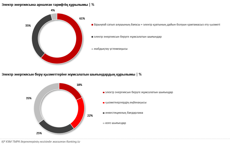 - электр энергиясын беруге жұмсалатын шығындар — 35%;