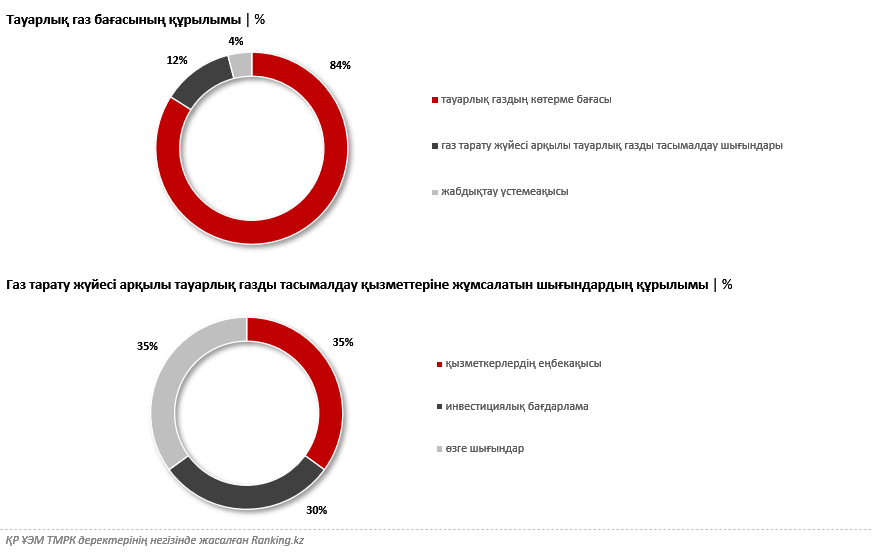 - тауарлық газдың көтерме бағасы — түпкілікті бағаның орта есеппен 84%-ы;