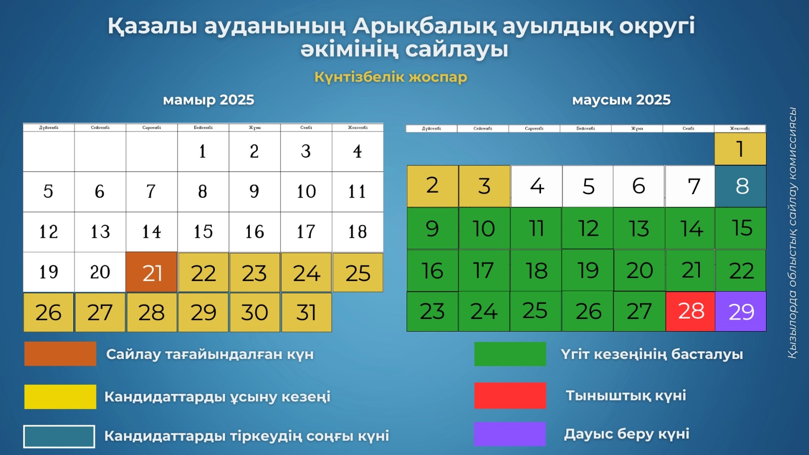 Қазалы ауданының аумақтық сайлау комиссиясы Хабарлайды