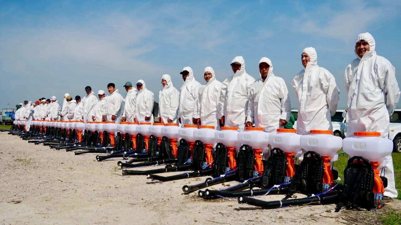 Жұмысқа 287 дана арнайы жерүсті бүрку техникасы, 4 ұшақ және 980 маман тартылды. Өңдеу агротехникалық тұрғыдан тиімді мерзімде, жоғары биологиялық тиімділікпен жүргізілуде.