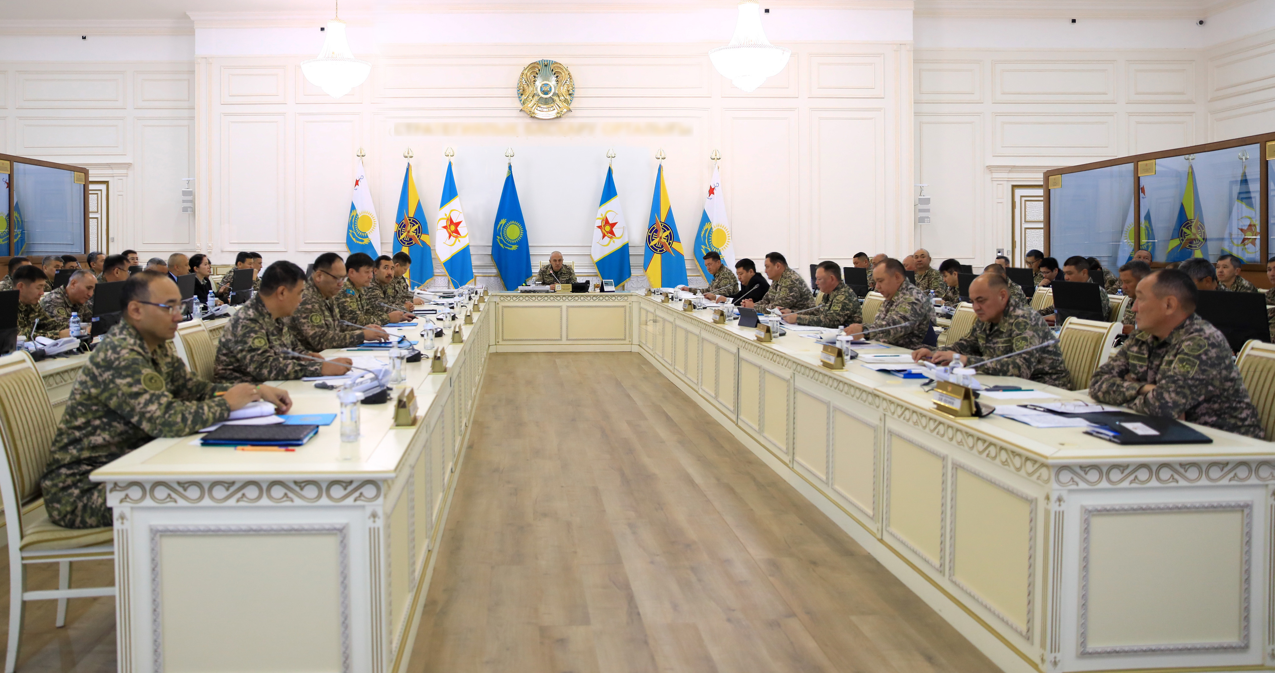 Под председательством Министра обороны Республики Казахстан генерал-полковника Руслана Жаксылыкова состоялось расширенное заседание коллегии оборонного ведомства. В работе заседания приняли участие руководящий состав Министерства обороны и Генерального штаба, главнокомандующие видами Вооруженных сил, командующие родами войск, войсками региональных командований и командиры воинских частей.