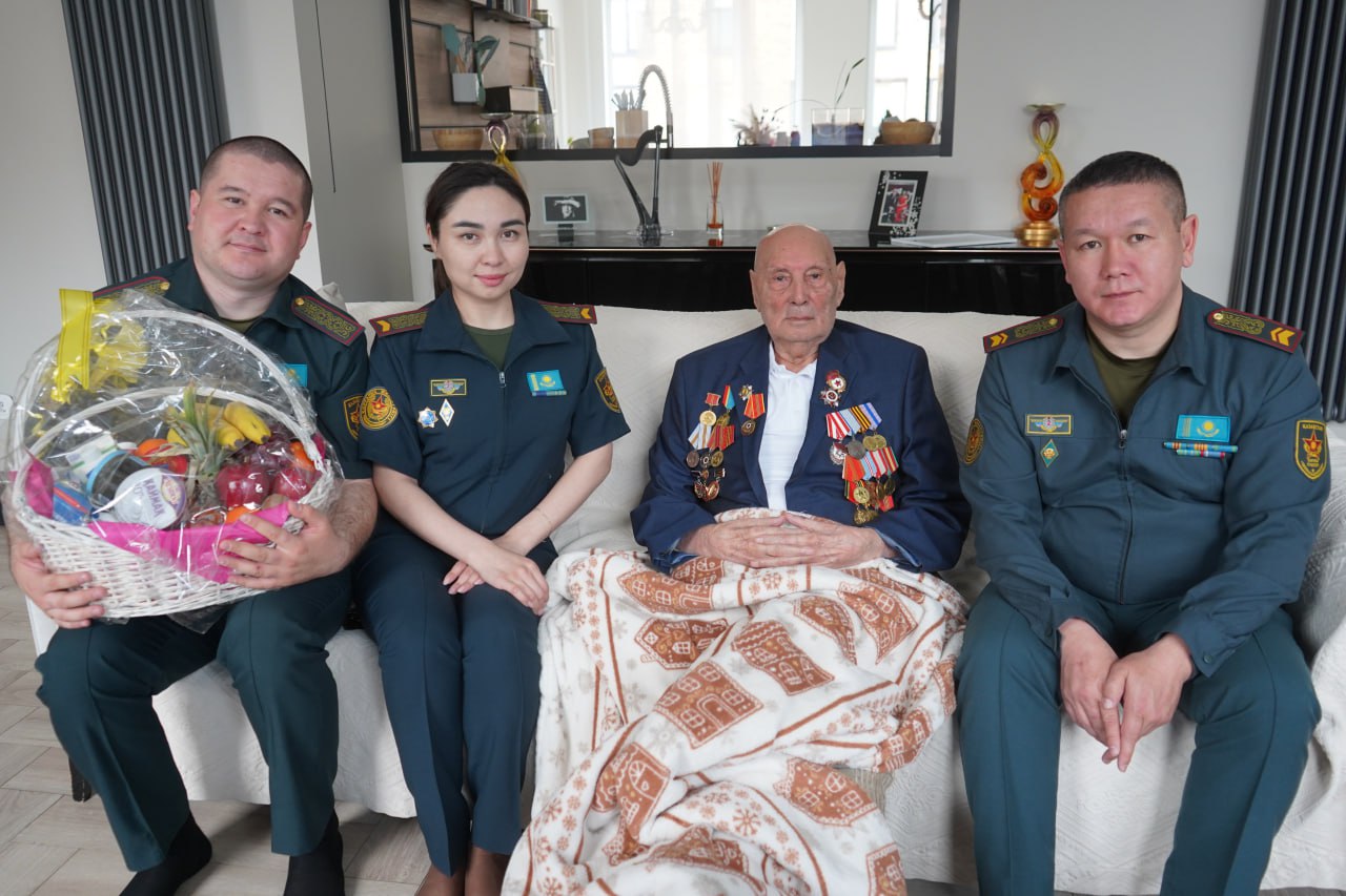 Алматыда Медеу аудандық қорғаныс істері жөніндегі басқармасының әскери қызметшілері ардагерді 99 жасқа толған туған күнімен құттықтады.